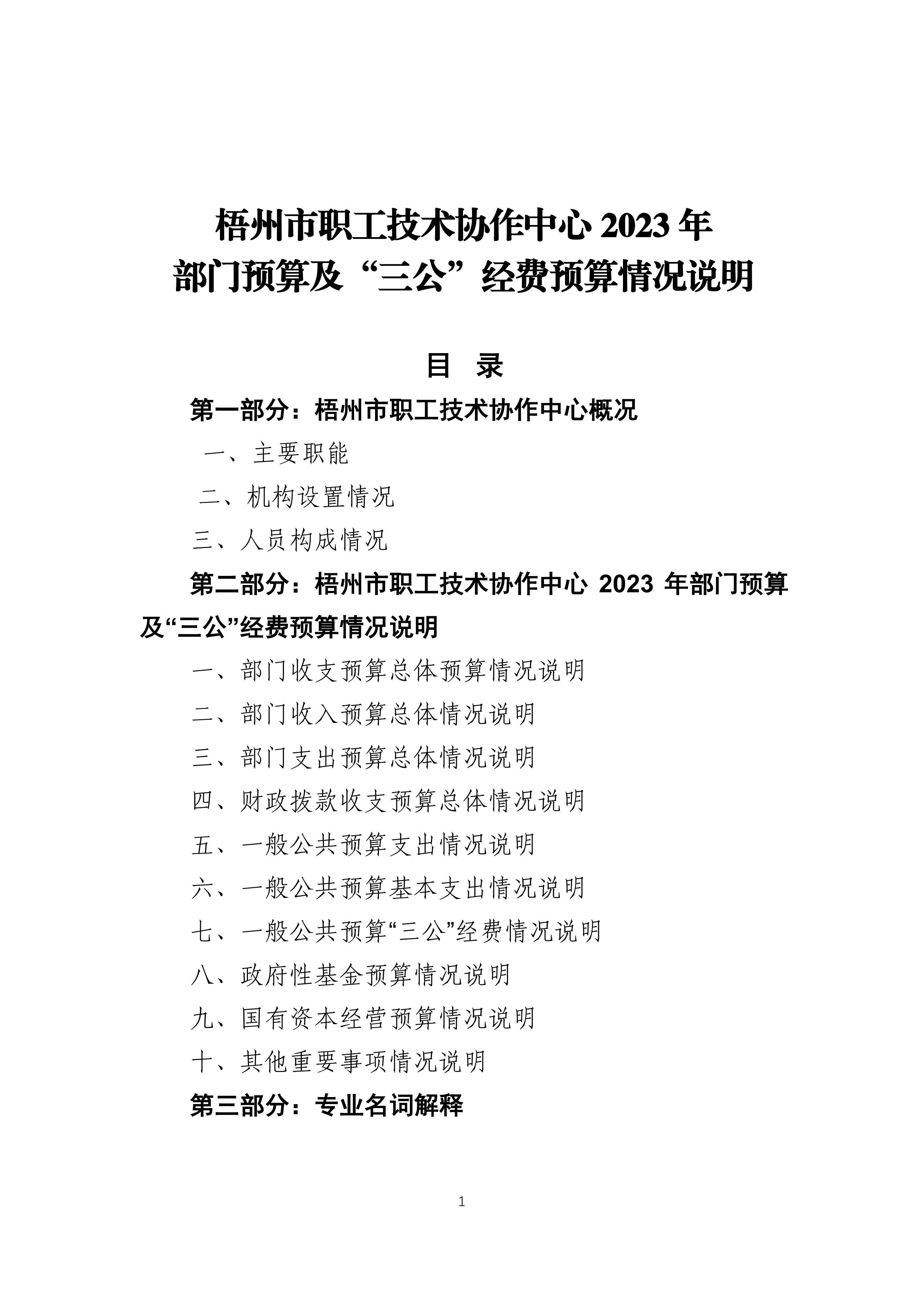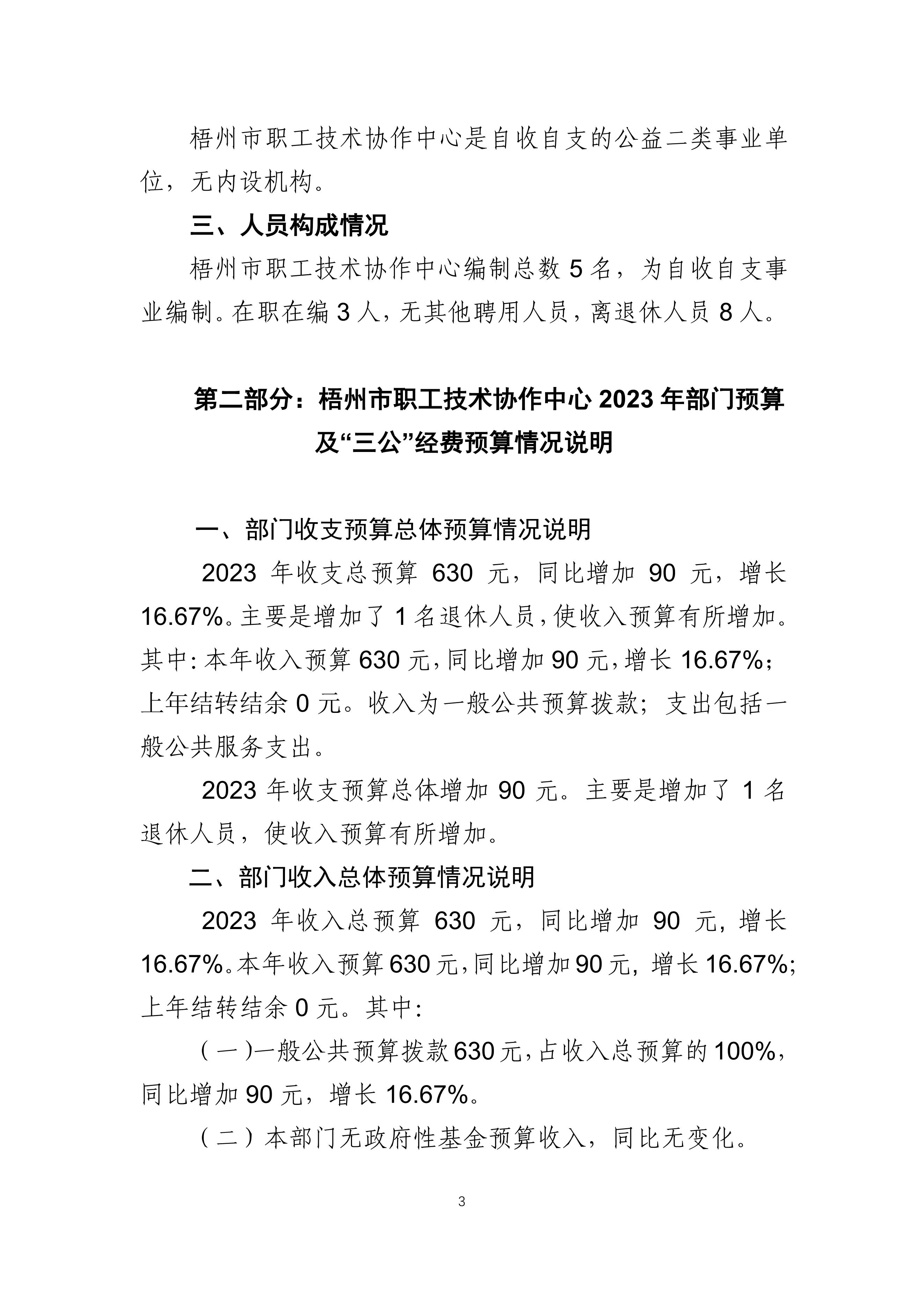梧州市職工技術(shù)協(xié)作中心2023年度部門預(yù)算及”三公“經(jīng)費(fèi)預(yù)算情況說(shuō)明