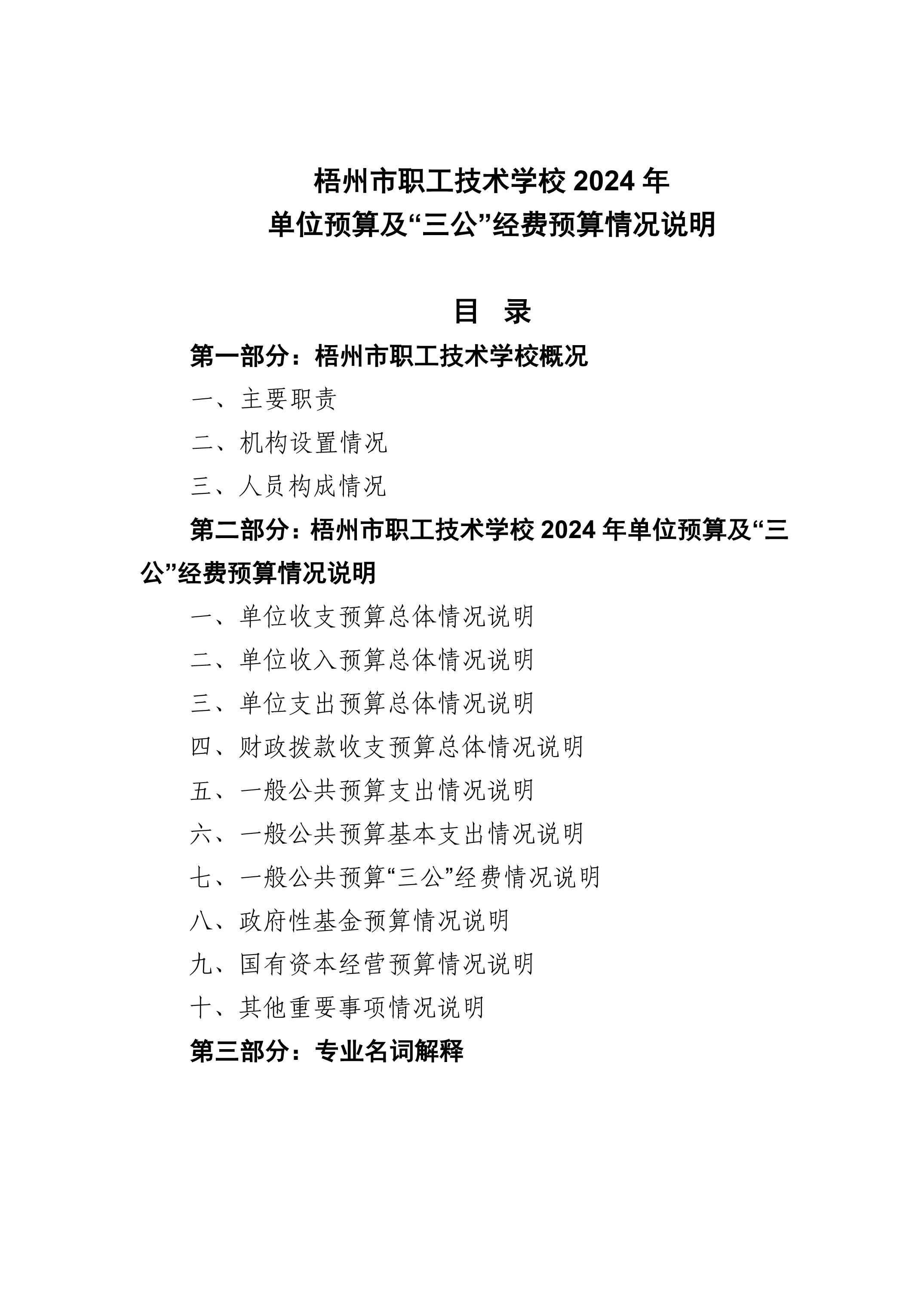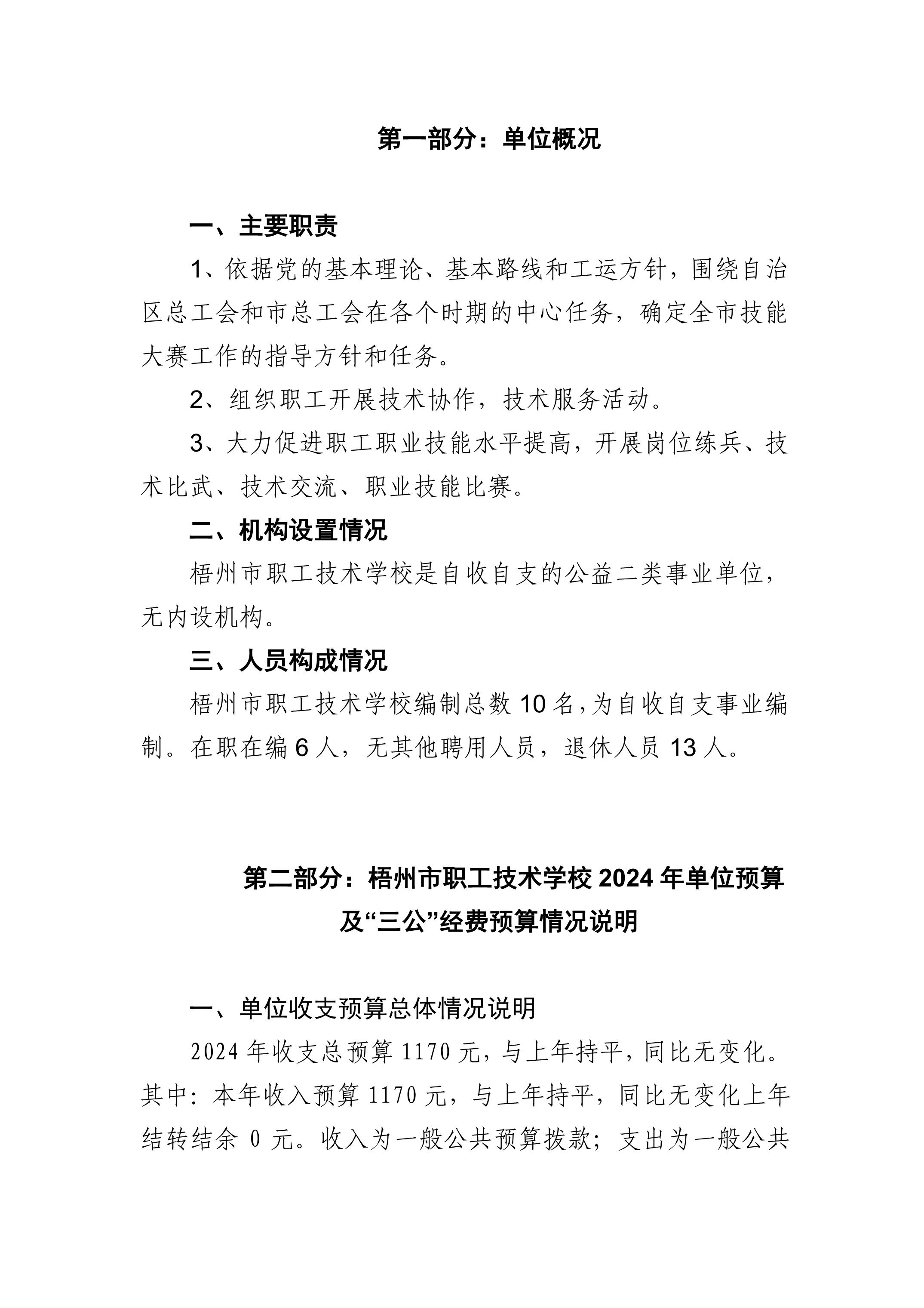 [單位預(yù)算]梧州市職工技術(shù)學(xué)校2024年單位預(yù)算及“三公”經(jīng)費(fèi)預(yù)算情況說(shuō)明