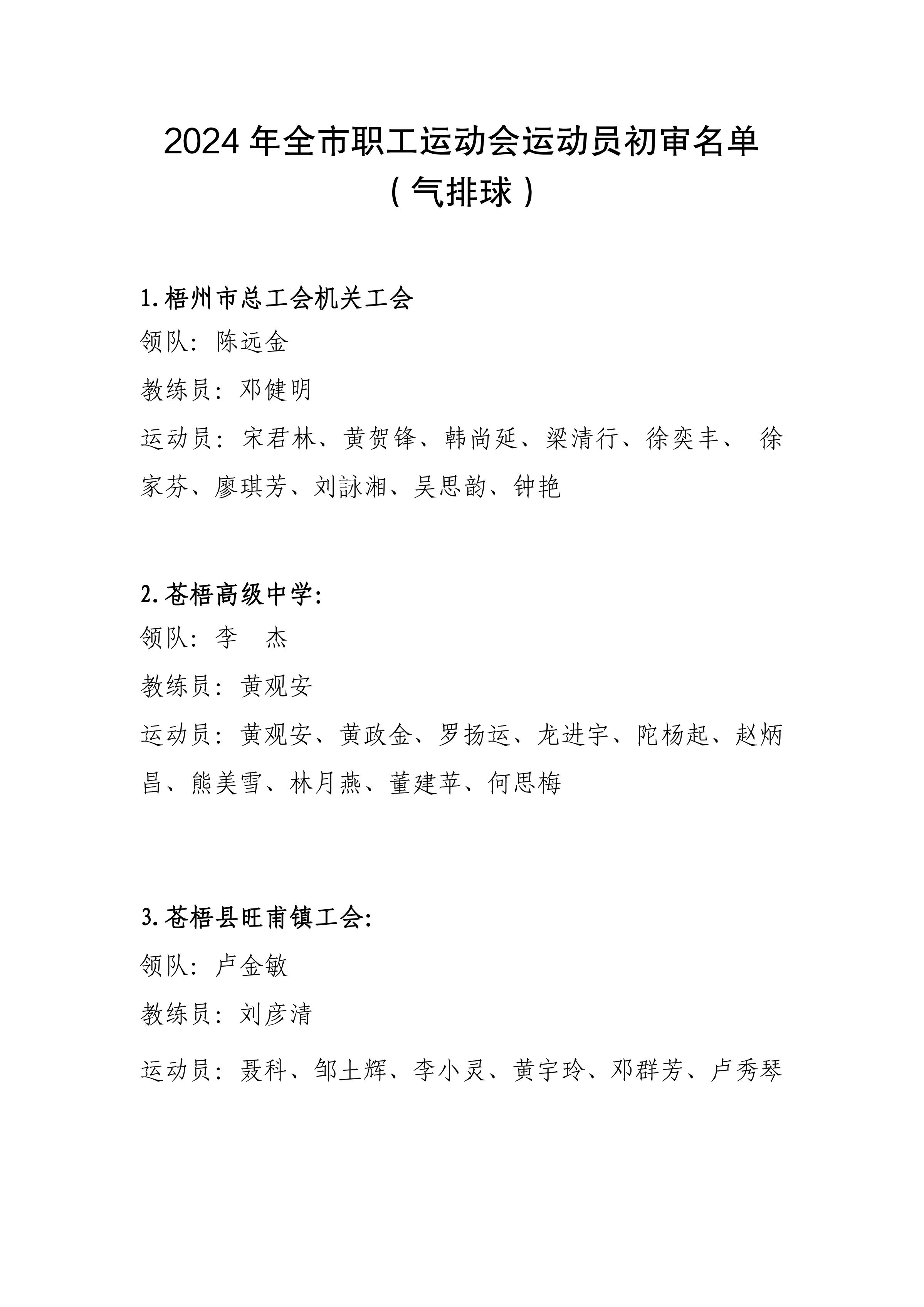 2024年全市職工運動會氣運動員初審名單(氣排球)